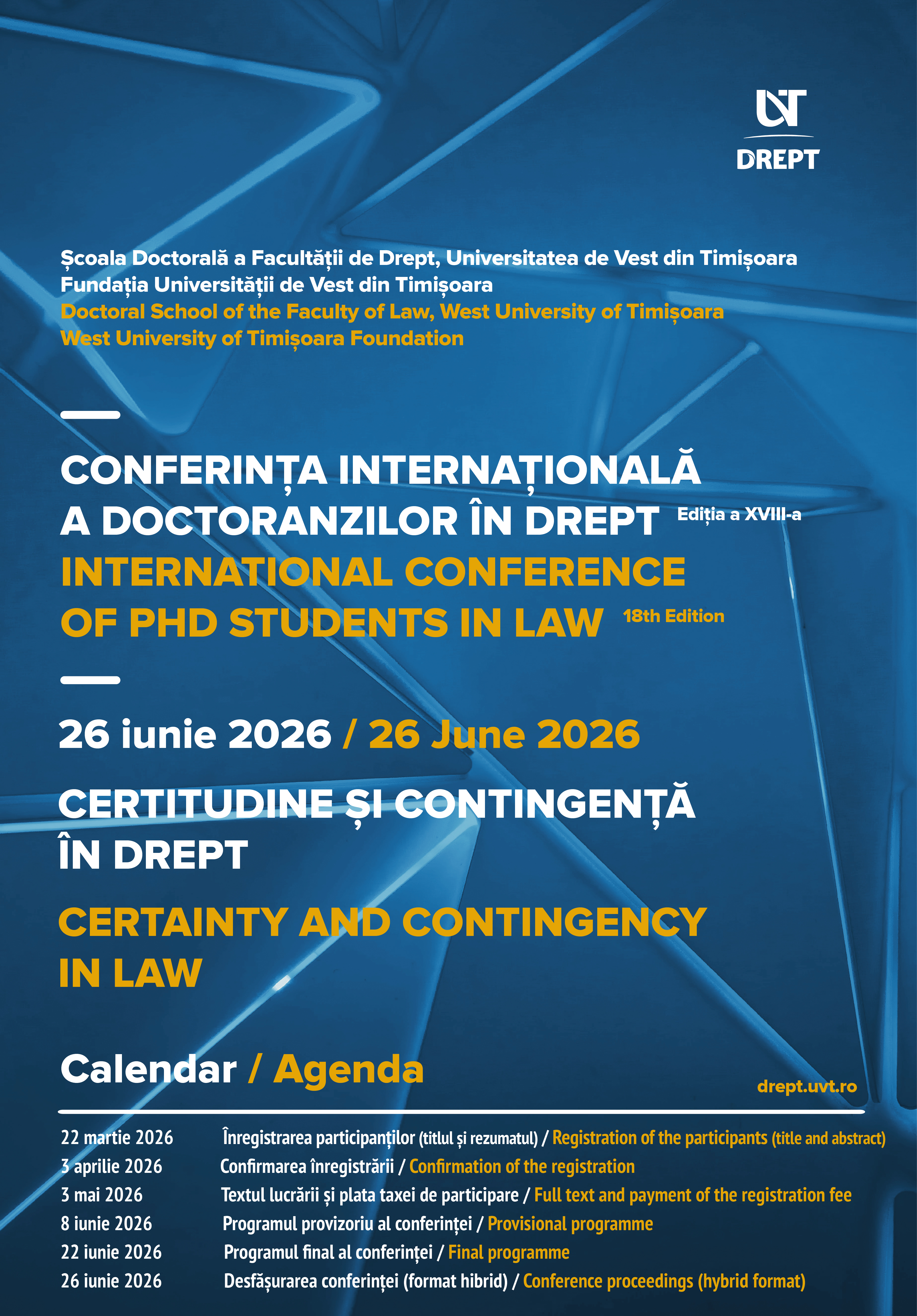 CONFERINȚA INTERNAȚIONALĂ A DOCTORANZILOR - EDIȚIA A XVIII-A, TIMIȘOARA – 26 IUNIE 2026