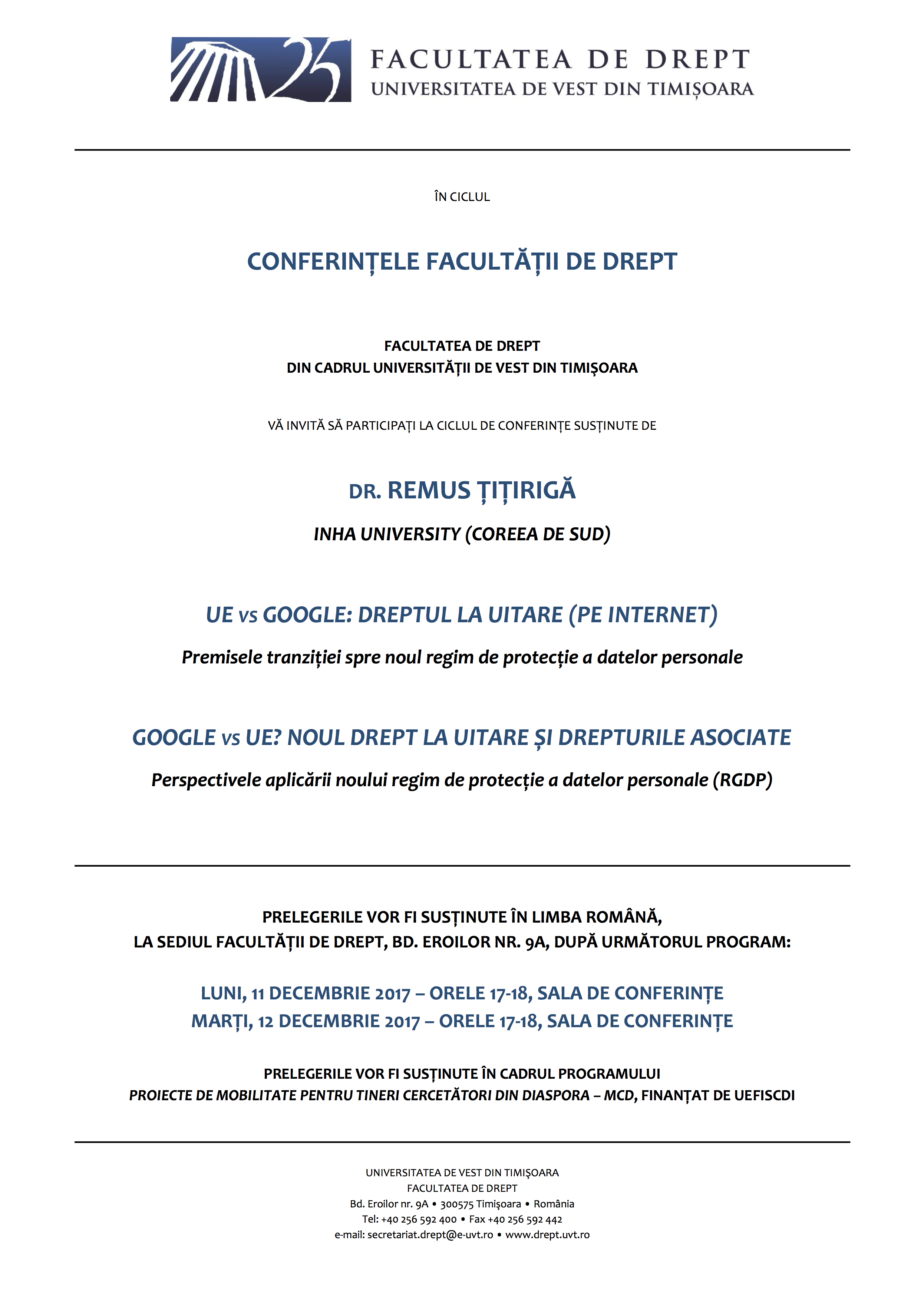 CONFERINŢELE FACULTĂŢII DE DREPT