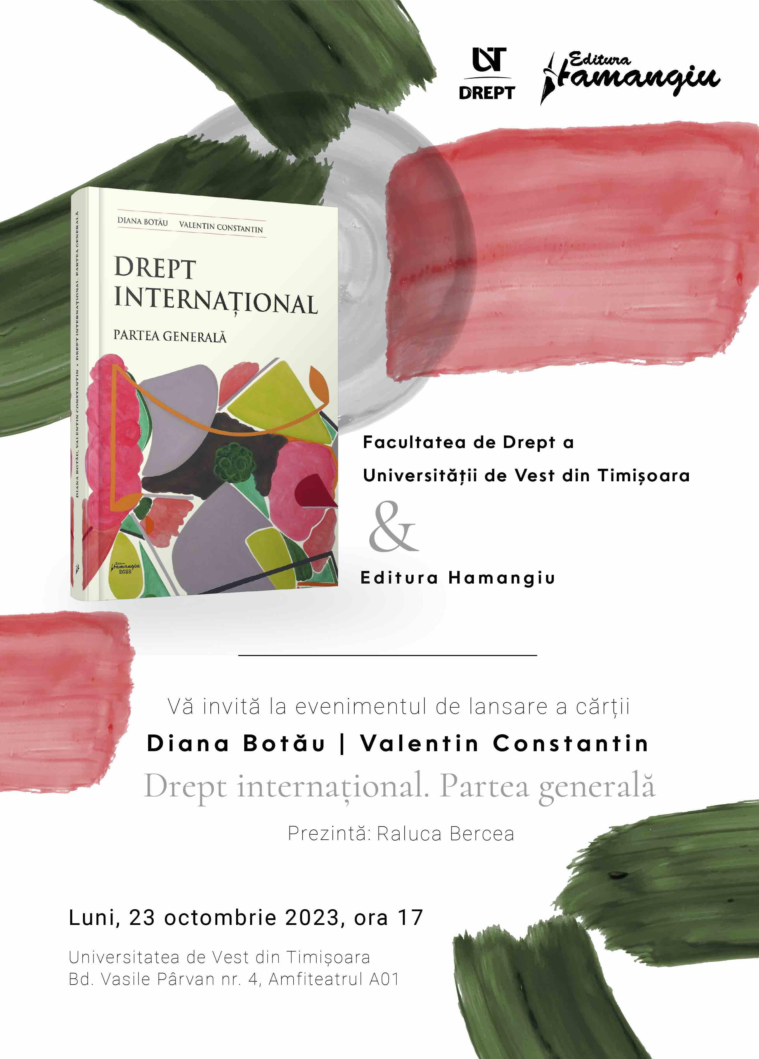 Lansare de carte / Diana Botau, Valentin Constantin, Drept internațional / Luni, 23 octombrie 2023, ora 17 / UVT, A01