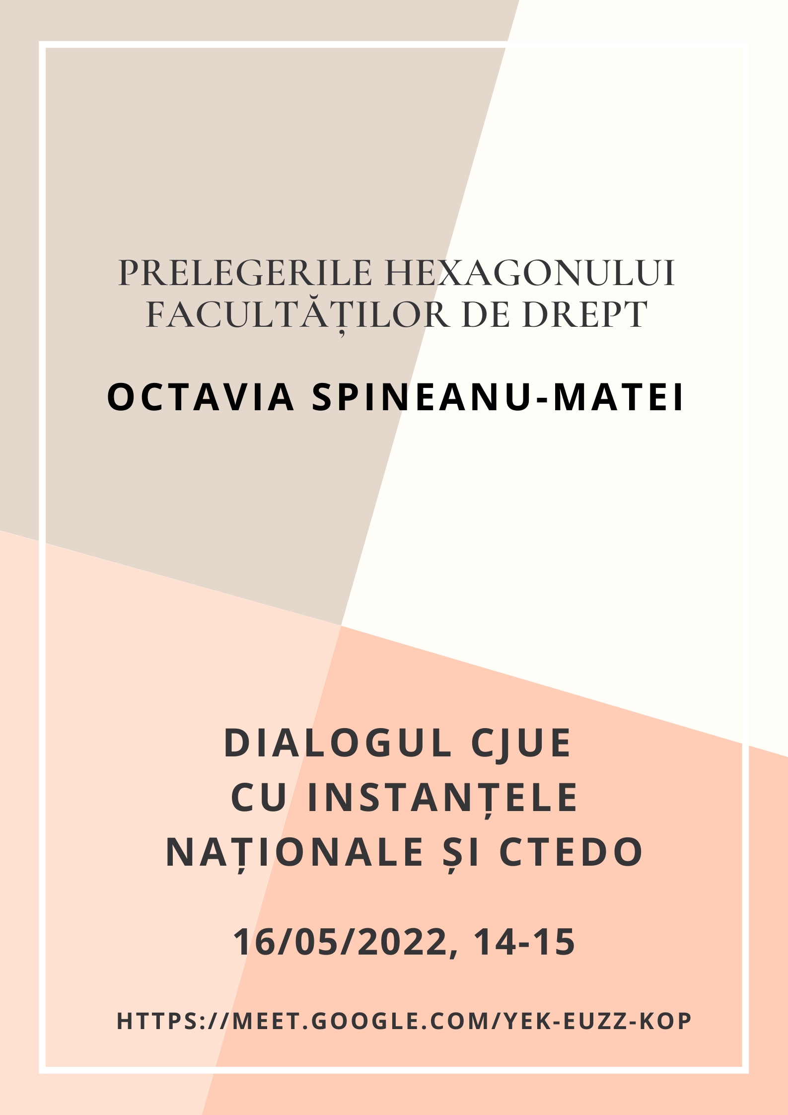 PRELEGERILE HEXAGONULUI FACULTÄTILOR DE DREPT - DIALOGUL CUE CU INSTANTELE NATIONALE SI CTEDO - 16.05.2022, 14-15